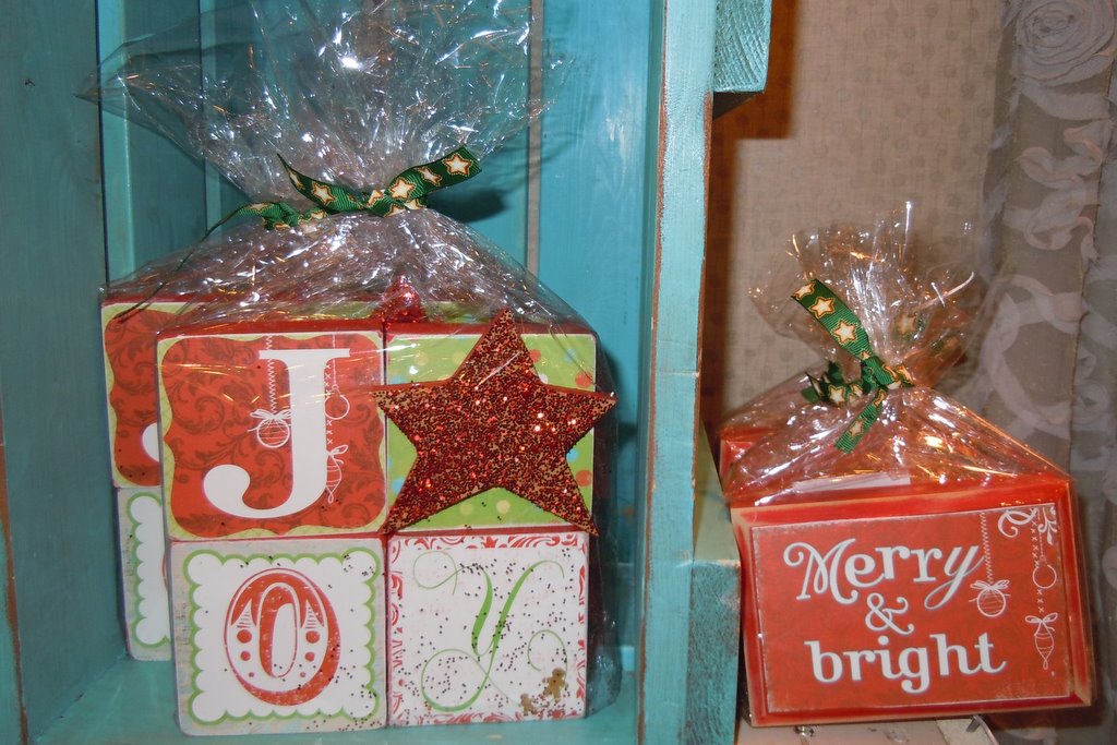 The booth looked awesome - jam-packed with "stuff" including darling handmade items (a rare thing to see nowadays) such as these Christmas wood plaques for holiday decorating. Made by Alison, the wood decor pieces are adorable in real life with glitter and dimension. They'll be sold at the store - Carolee's Creations on north Main just south of the Hyde Park stoplight where the shopping fun continues.